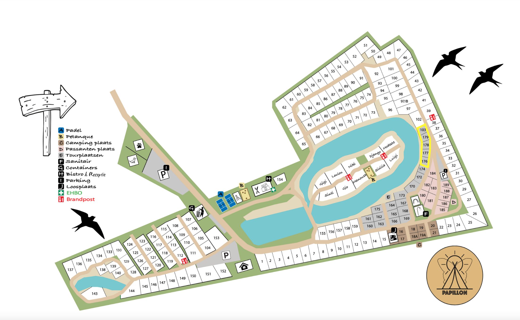 In der Nebensaison sowie aufgrund behördlicher Maßnahmen oder wetterbedingter Einflüsse kann es zu einer Einschränkung des Betriebes von Attraktionen, Dienstleistungen und Einrichtungen auf dem Campingplatz kommen.