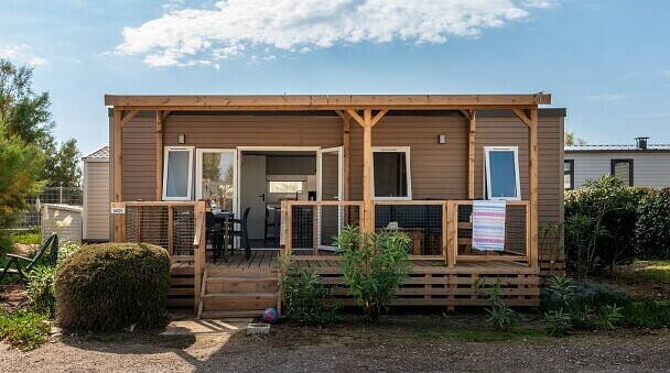 - Mobilheime für bis zu sechs Personen buchbar