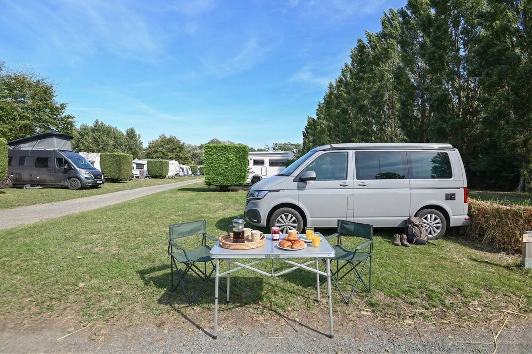 Während der Hauptsaison gibt es köstliche Snacks und kühle Drinks in der Snackbar direkt auf dem Platz. Im idyllischen Hafenstädtchen Oistreham und in der Stadt Caen gibt es eine große Auswahl an Restaurants, Bars und Cafés. Auch Einkaufsmöglichkeiten finden Sie ganz in der Nähe, beispielsweise Supermärkte, eine Bäckerei, eine Metzgerei, einen Zeitungsladen und eine Reinigung. Probieren Sie unbedingt die Fischspezialitäten der Region und den landestypischen Calvados.