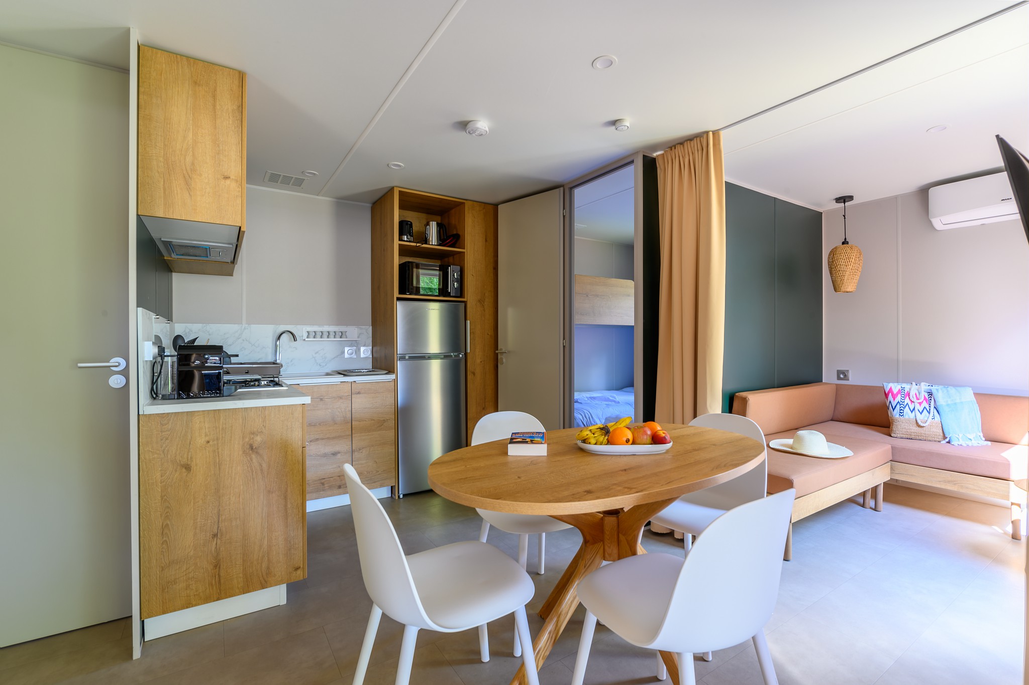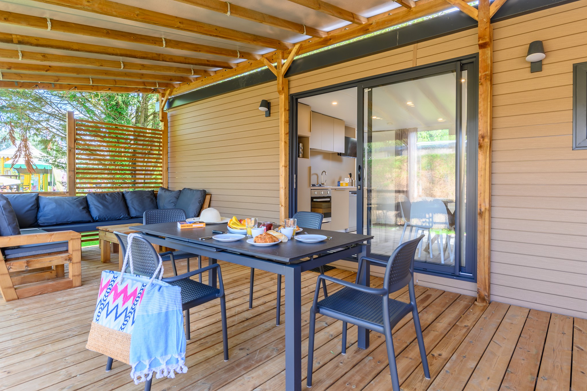 In Homair La Croix du Vieux Pont können Sie beim Camping Luxus pur genießen: Das hervorragende Restaurant bietet täglich köstliche Speisen an und die Bar lockt mit einem Panoramablick auf die Lagune. Außerdem gibt es ein Take-away, einen Supermarkt und weitere Lebensmittelläden. Ob Sie im Mobilheim selbst Ihre Mahlzeiten zubereiten oder sich in einer nahen Gaststätte verwöhnen lassen: Überall ist der genussvolle französische Lebensstil zu spüren.