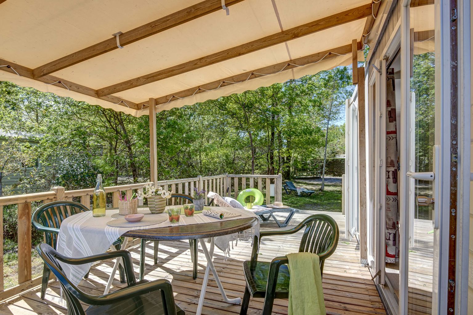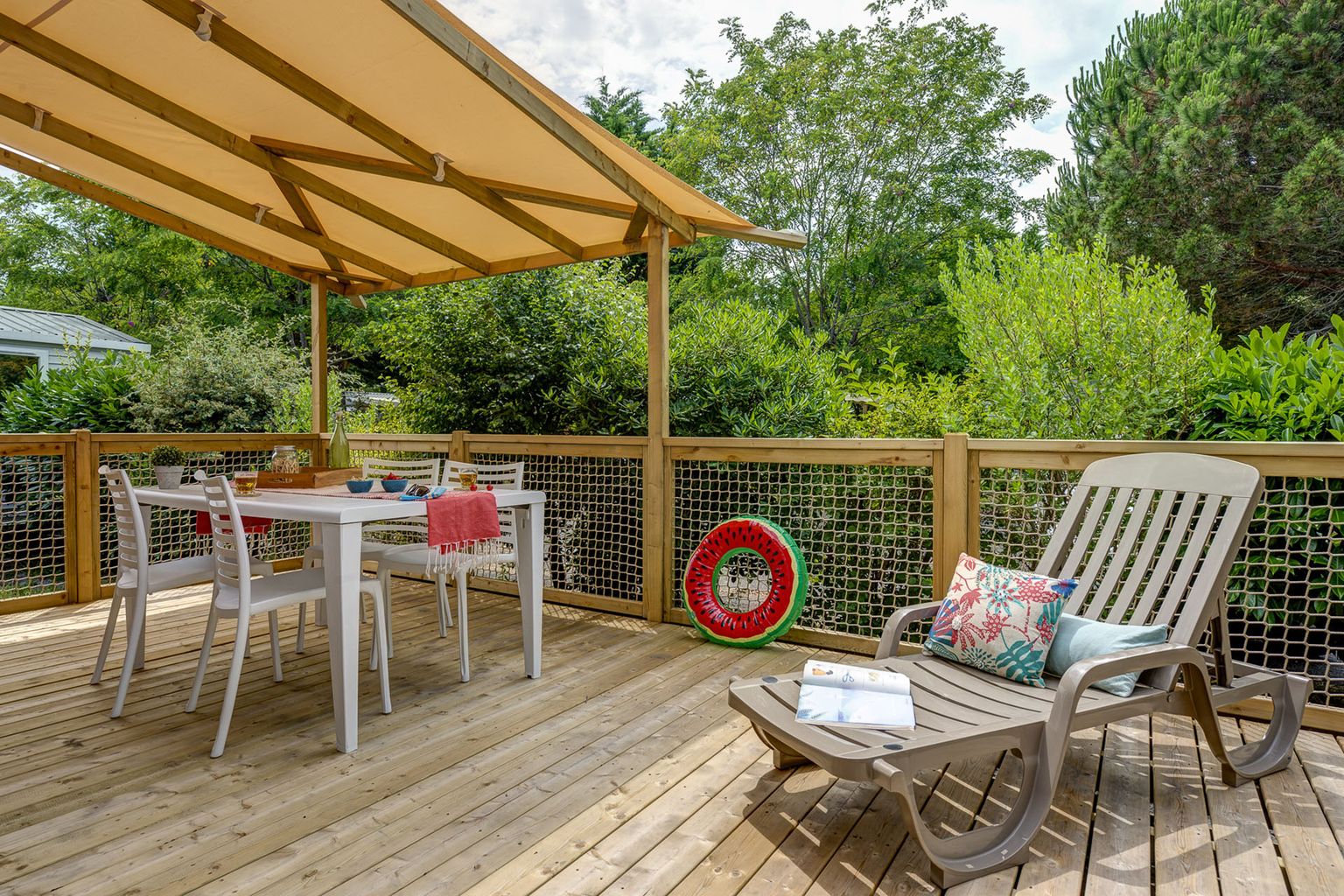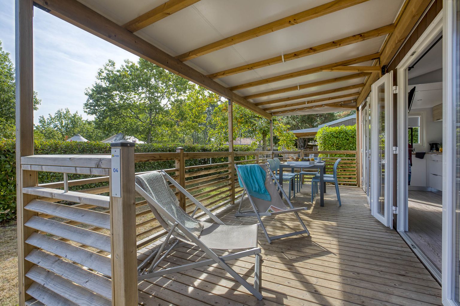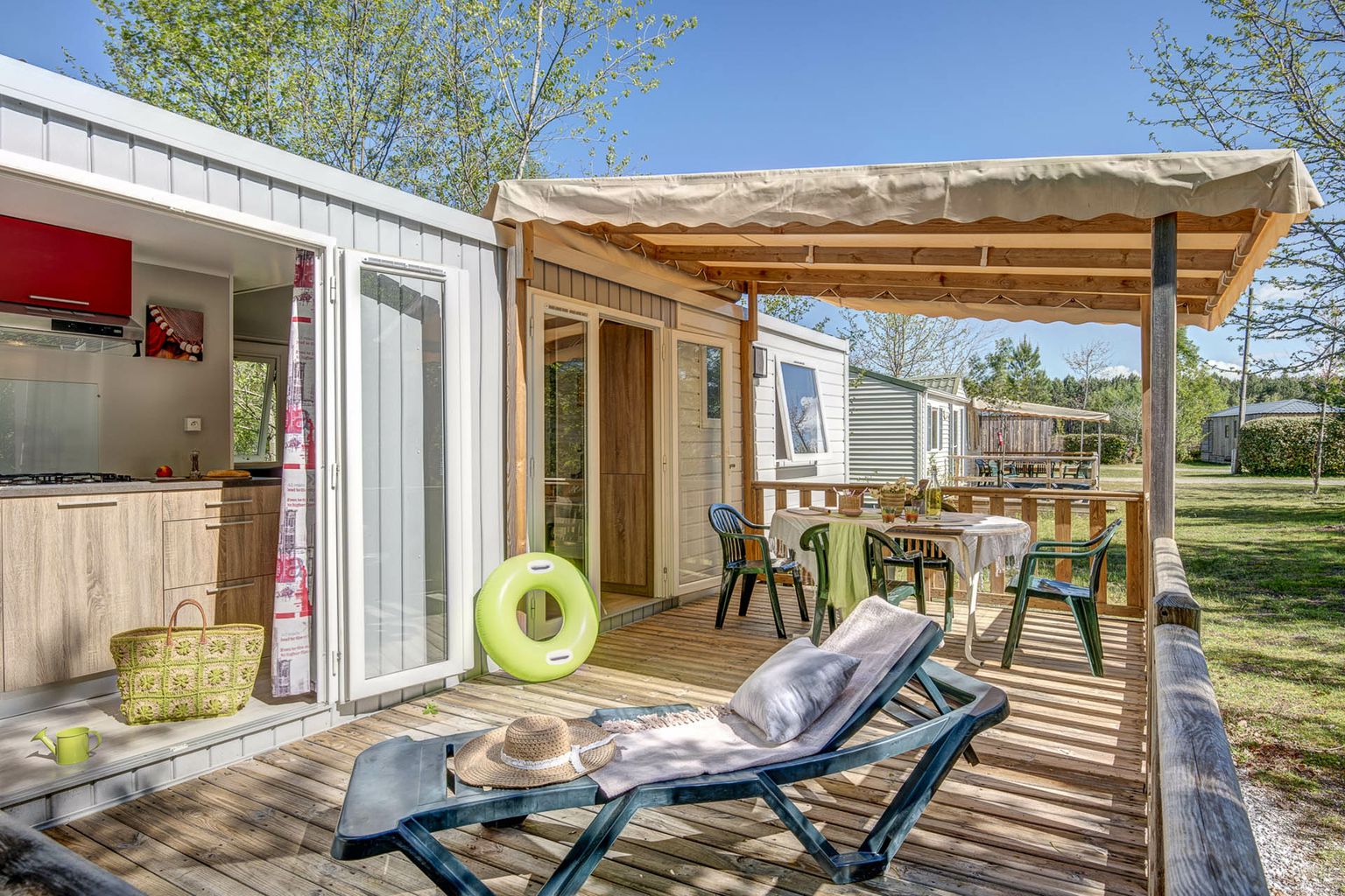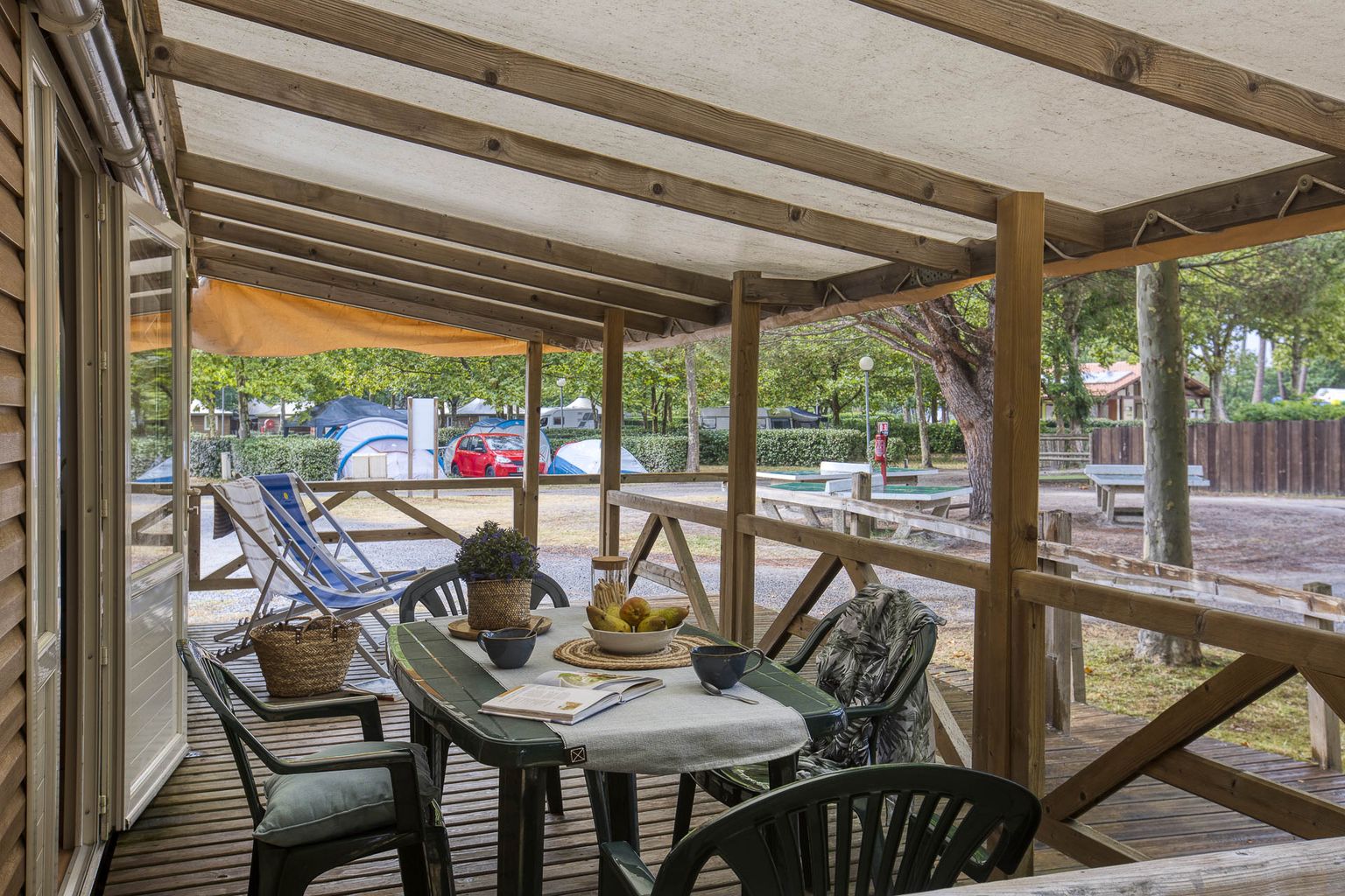 Genießen Sie die wärmenden Strahlen der Sonne auf der großzügigen Terrasse und verwöhnen Sie Ihren Gaumen mit den kleinen Speisen der angeschlossenen Snackbar. Oder kaufen Sie frische Brote und süße Leckereien direkt auf dem Platz. Für den größeren Einkauf fahren Sie mit dem Auto oder Fahrrad in das Zentrum von Sanguinet. Praktisch: Während Ihres Campingurlaubs können Sie auf dem Platz einen Kühlschrank mieten.