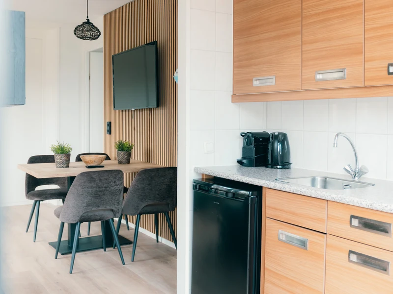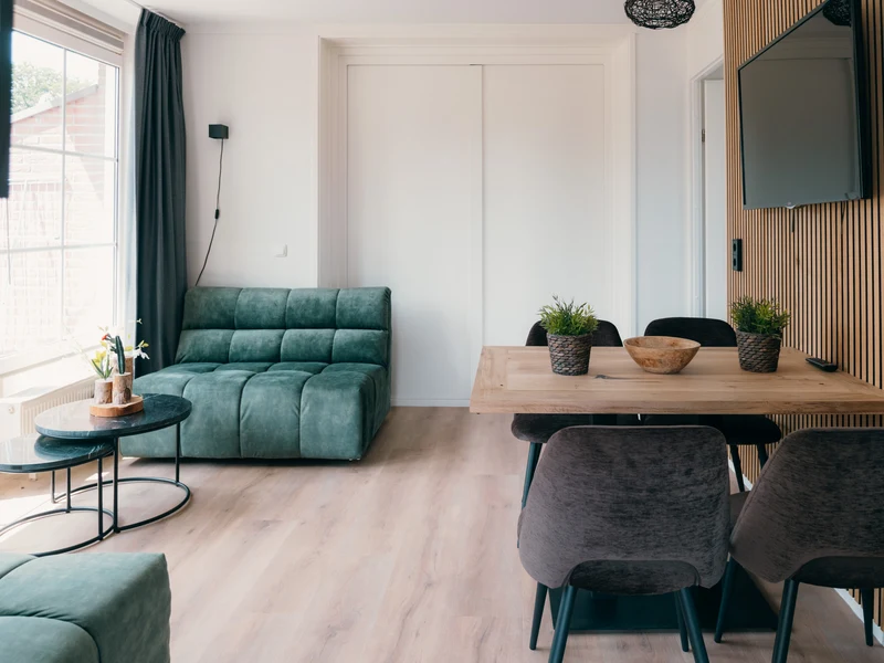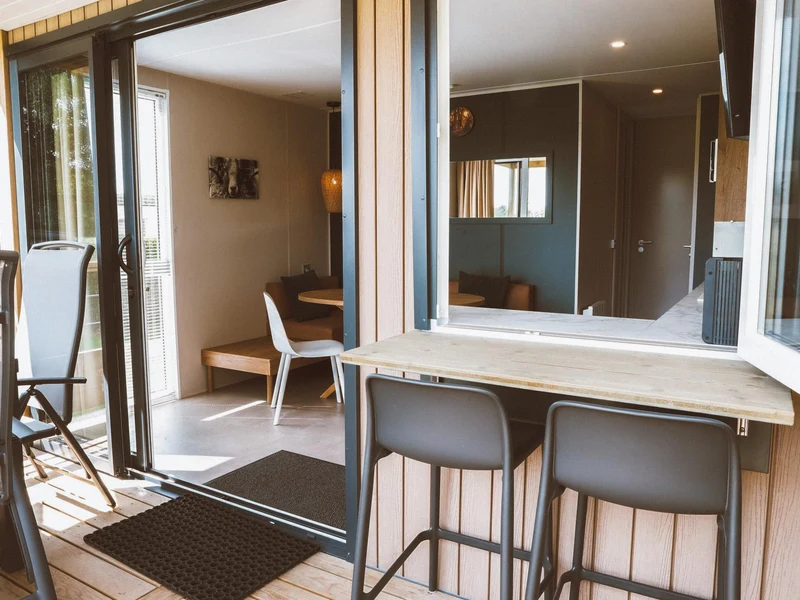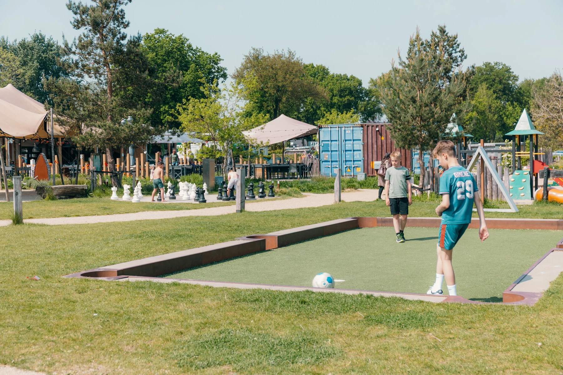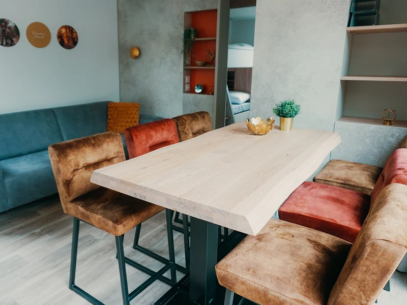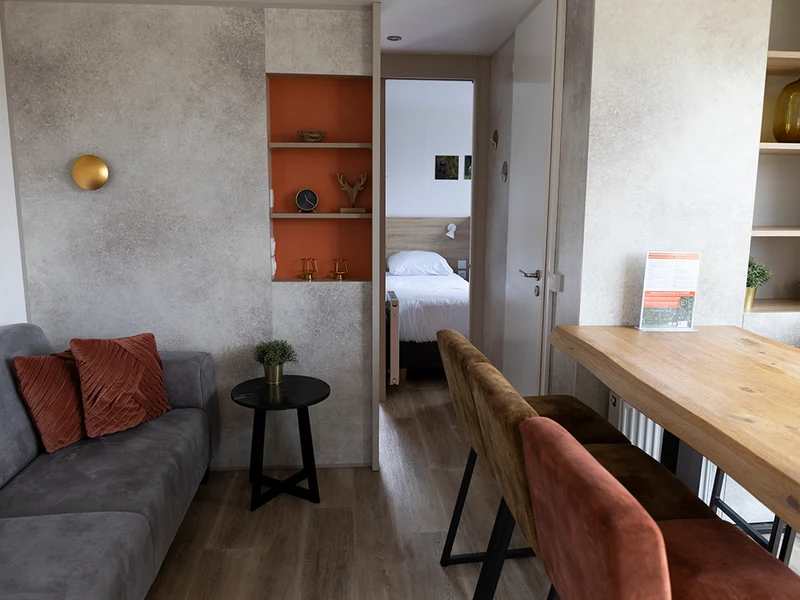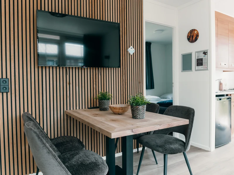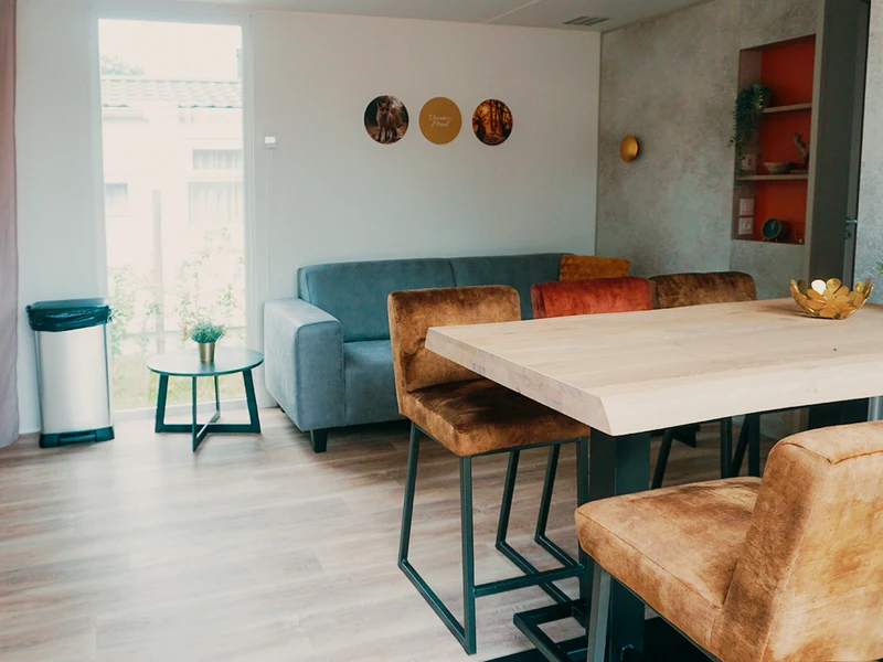 Ein erfrischendes Bad am Morgen oder ein Nachmittag voller Wasserspaß – Sie wählen das Tempo. Im Hallenbad schwimmen Kinder unter den wachsamen Augen der Eltern ihre ersten Bahnen, während draußen der Wasserfall und die Massagedüsen für Entspannung sorgen. An heißen Tagen können Sie sich auf einer Liege am Pool entspannen, während die Kleinen sicher im separaten Planschbecken planschen. Auch an Land bietet der Freizeitpark De Boshoek jede Menge Unterhaltung. Mit einem digitalen Escaperoom, Fußball, Tennisplätzen und Minigolf gibt es immer etwas zu tun. In der Racing Lounge können Sie sich hinter das Steuer eines Simulators setzen und virtuell über die Rennstrecke rasen. Für die Kleinsten stehen die Maskottchen Kiki und Koen zum Kuscheln und Tanzen auf dem Spielplatz bereit.