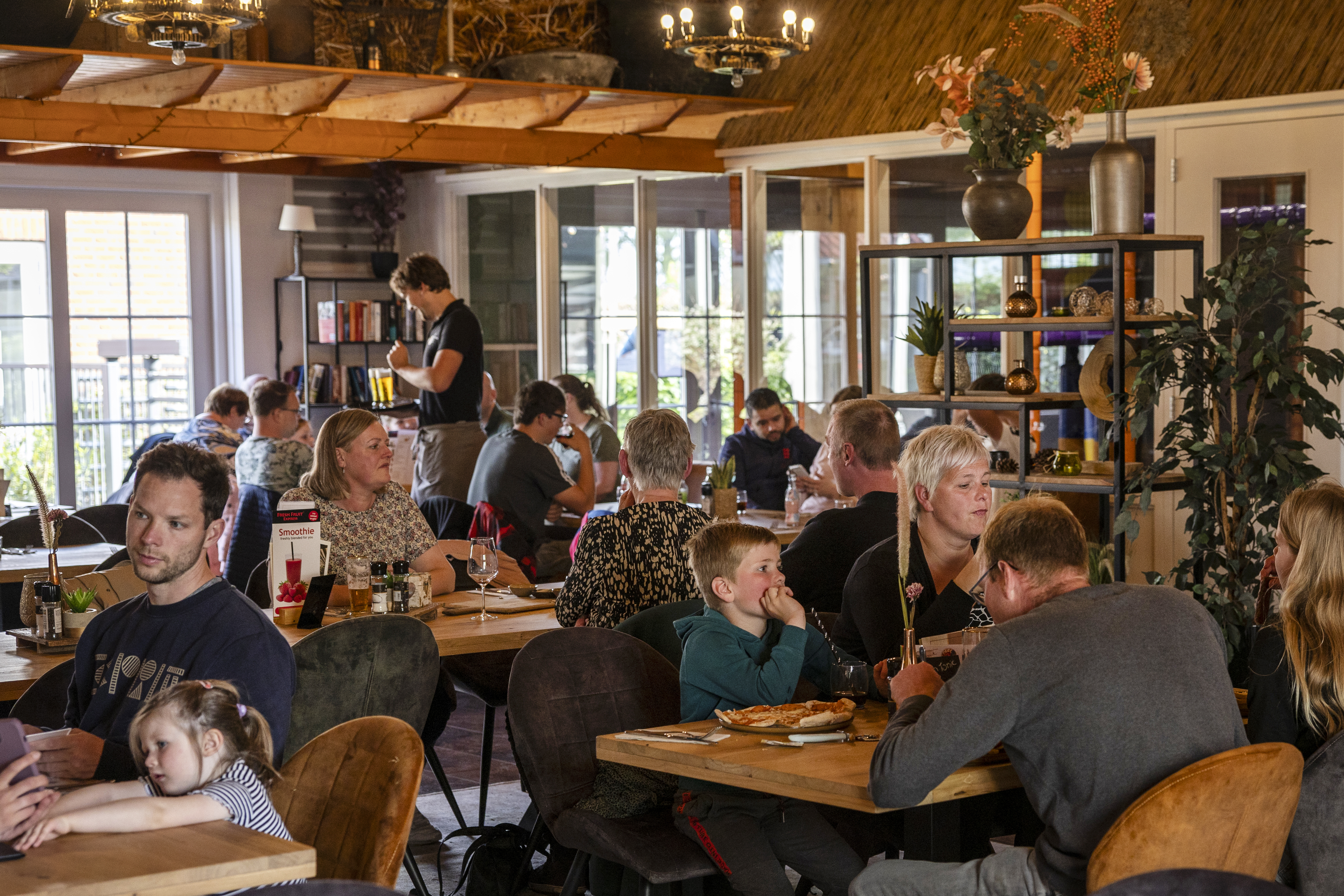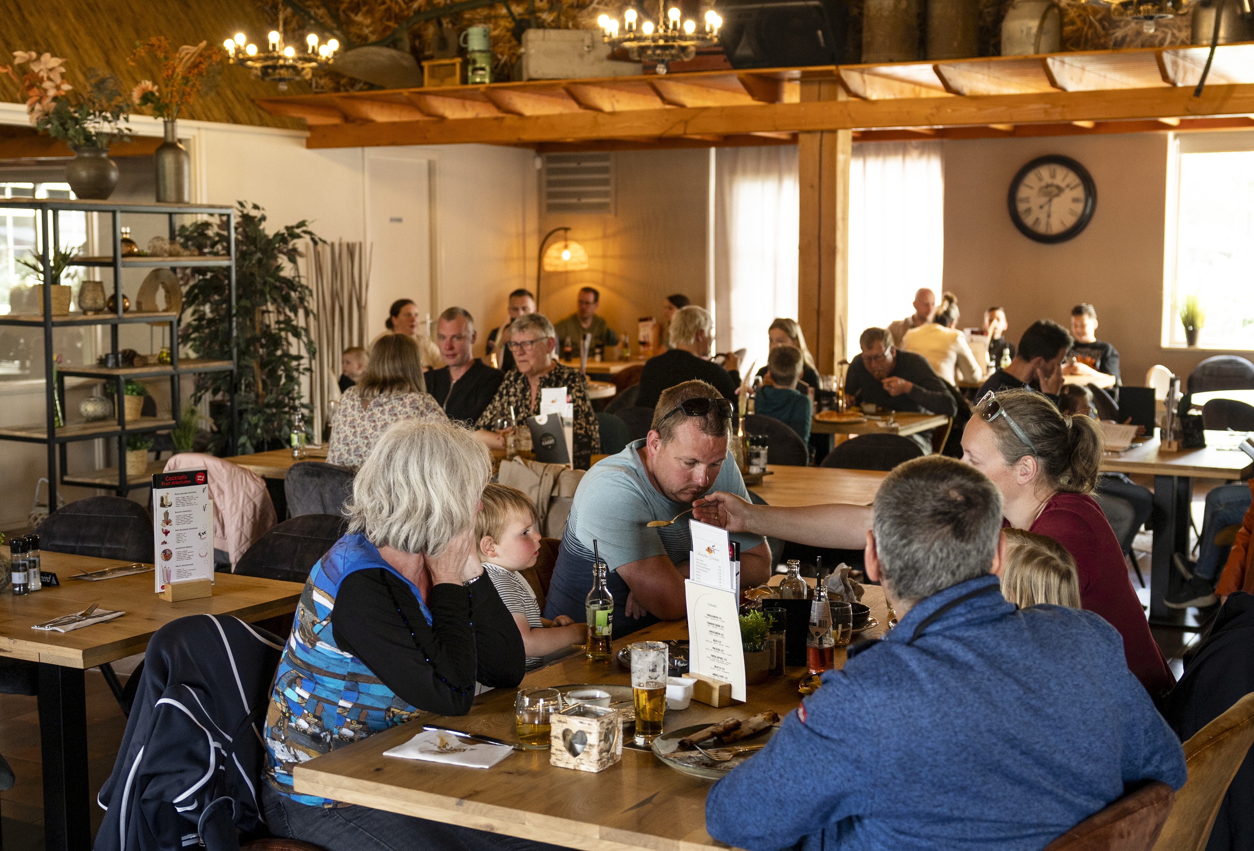 Um sich für das Camping mit Lebensmitteln zu versorgen, steht der Mini-Shop in der Nähe der Rezeption zur Verfügung. Dort gibt es täglich frische Brötchen zu kaufen. Genießen Sie köstliche Drinks auf der Terrasse im Restaurant Bi'j Koers oder verzehren Sie dort die typischen Speisen der Region. Alle Speisen sind auch zum Mitnehmen geeignet.