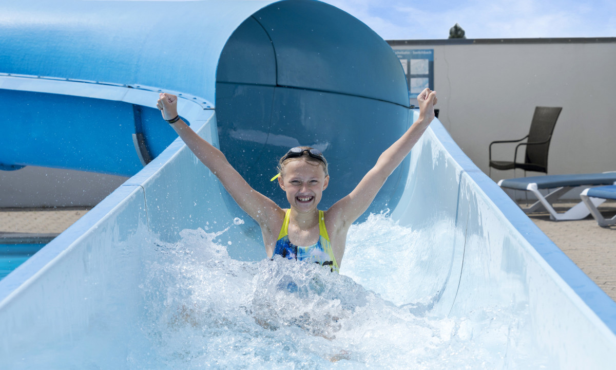 - Innen- und Außenpool mit Wasserrutsche