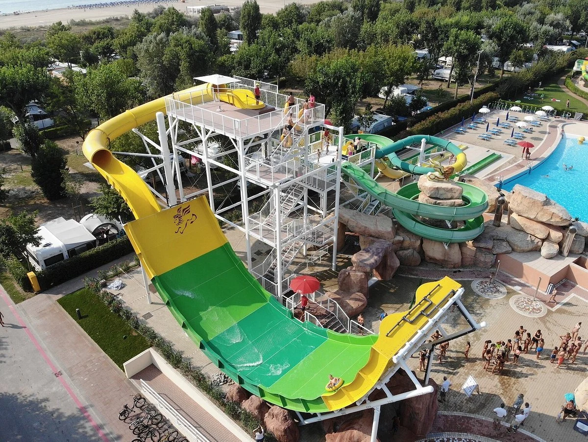 Luxus-Camping in Marina di Venezia ist ideal für Urlauber, die einen erholsamen Badeurlaub mit abwechslungsreichen Ausflügen verbinden wollen. Kleine und große Wasserratten kommen am feinsandigen, breiten Strand auf ihre Kosten. Doch auch im Inneren der Anlage lockt das kühle Nass. Die riesige Poolanlage mit zahlreichen Becken, Wellenschwimmbad, Rutschbahnen und Whirlpool begeistert Jung und Alt. Nehmen Sie sich eine Auszeit vom Badespaß und erleben Sie hautnah den morbiden Charme der berühmten Lagunenstadt Venedig! Nur wenige Kilometer trennen Sie vom Traumziel. Erkunden Sie mit dem Boot die herrliche Lagunenlandschaft und legen Sie einen Zwischenstopp auf der berühmten Insel der Glasbläser – Murano – ein!